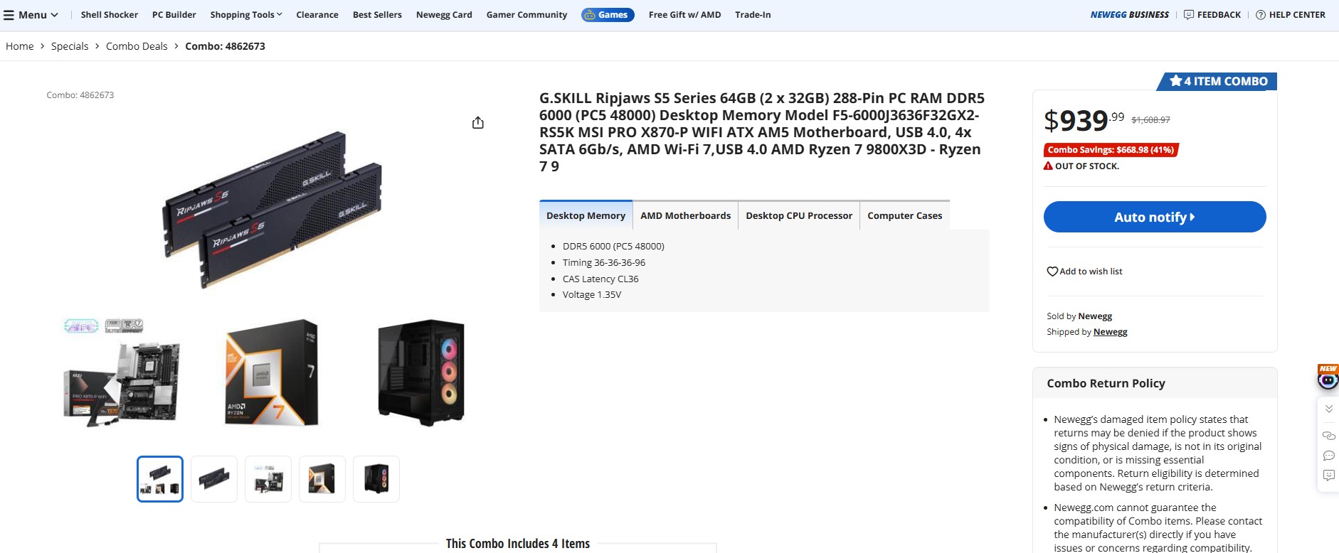 NOTE: The astute among you will notice that the screenshot above shows that this combo is Out of Stock, which it is (at the time of writing), but it was available this morning when I placed my order :).